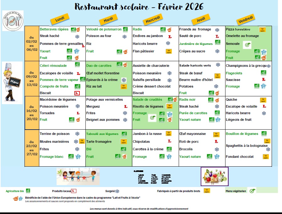 Madame, Monsieur, Chers parents, La Commune de Pavie a entrepris une démarche d'amélioration qualitative des repas servis aux enfants (approvisionnement local, produits biologiques, découverte de nouvelles saveurs...) et de lutte contre le gaspillage. Le repas est fait maison, en fonction des effectifs prévus des effectifs prévus par réservation par nos 2 cuisiniers José et Emilie. Un repas réservé et non consommé participe donc au gaspillage et au coût du repas. Vous pouvez annuler une réservation de repas au plus tard 48 h à l'avance et, de façon exceptionnelle, en cas d'imprévus, avant 9 h 30 le jour même. Pour annuler une réservation de repas, vous devez contacter la mairie par téléphone au 05.62.05.25.46 ou par mail. Toute annulation hors délai fera l'objet d'une facturation d'office. Merci pour votre compréhension. Pour régler votre facture mensuelle de cantine, plusieurs solutions existent : - par internet, avec votre carte bancaire sur le site sécurisé : www.payfip.gouv.fr ; Vous trouverez ci-dessous une fiche de renseignements comprenant la réservation au restaurant scolaire pour l'année scolaire prochaine. |